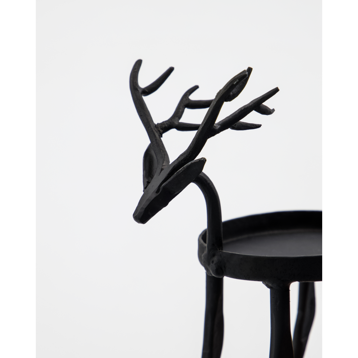 Add a touch of whimsy to your festive decor with this charming tealight holder. Crafted in a matte black iron, the reindeer-shaped design is both elegant and playful. Its back...