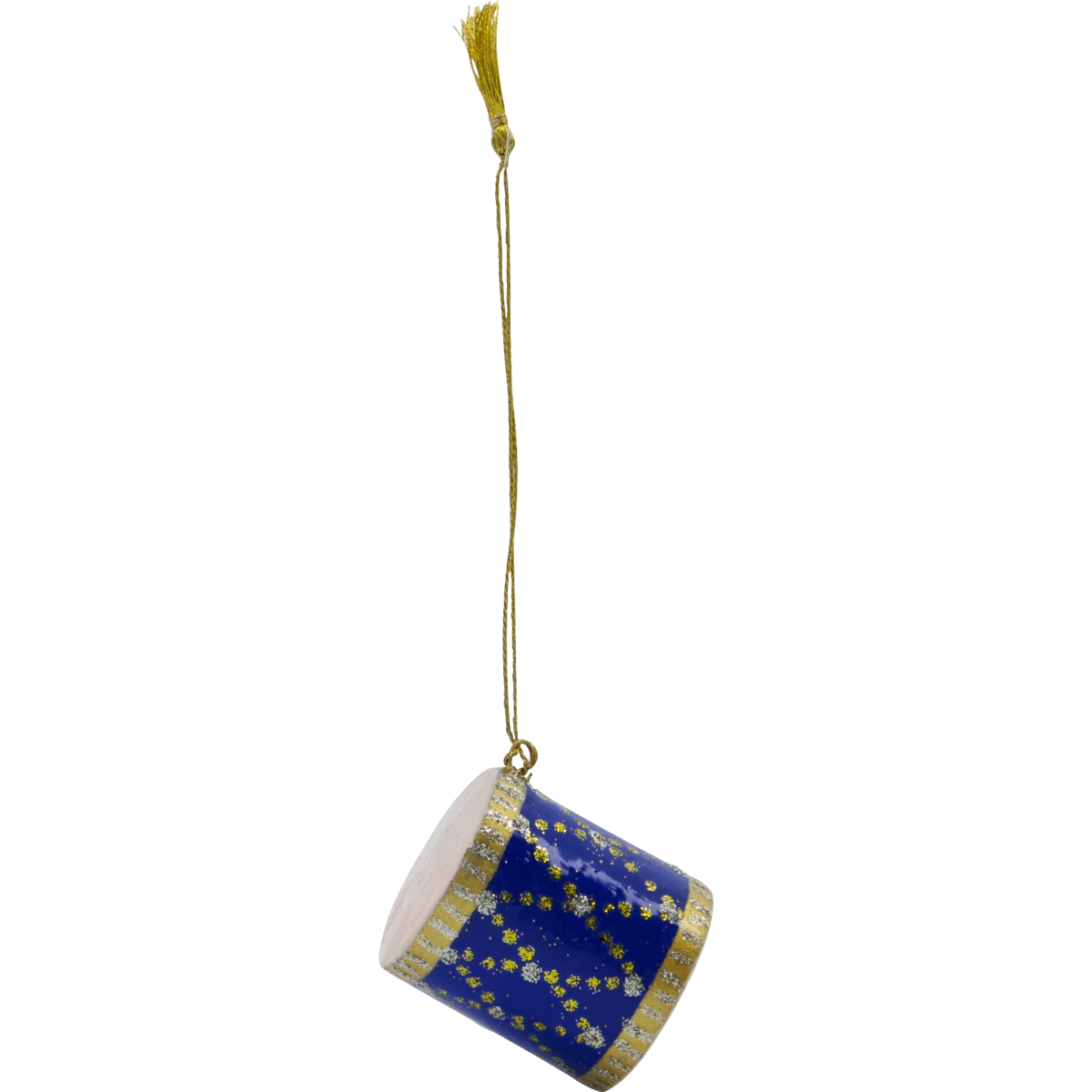 Transform your holiday decor with this exquisite set of drum ornaments. Handcrafted from FSC recycled wood, each ornament boasts a unique hand-painted pattern in dark blue, green, and beige. Perfect...