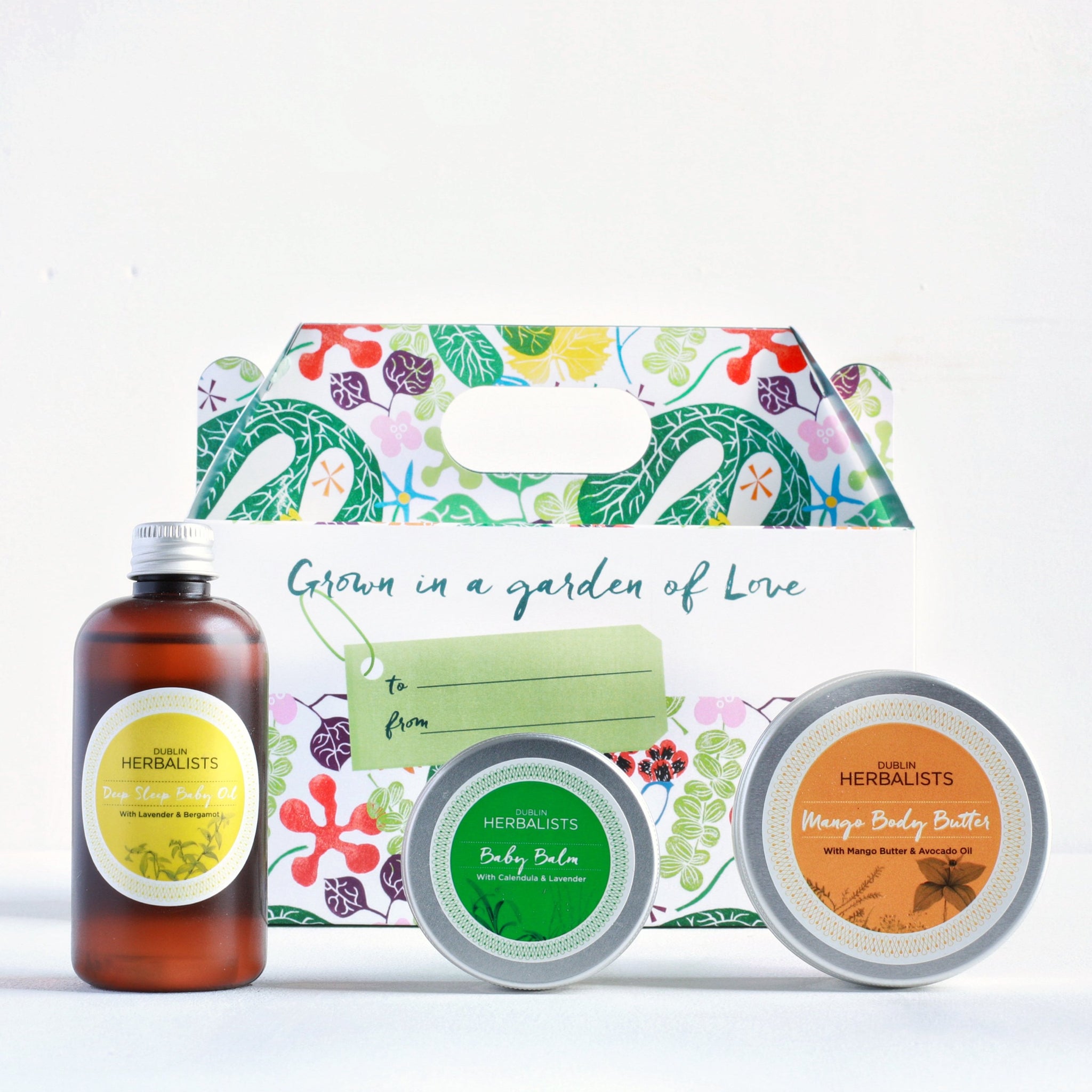 The perfect gift for any new parent, the Dublin Herbalists New Baby Collection includes Baby Oil and Baby Balm for baby and Mango Body Butter for Mum or Dad. Their soothing...